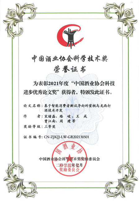 此外,中國(guó)食品院4篇科技論文榮獲2021年度中國(guó)酒業(yè)協(xié)會(huì)科學(xué)技術(shù)獎(jiǎng)(論文類),其中一等獎(jiǎng)1篇,二等獎(jiǎng)2篇,三等獎(jiǎng)1篇。
