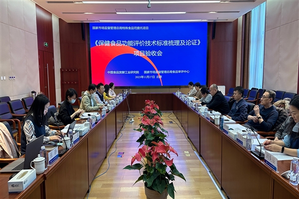 近日,受國家市場監督管理總局特殊食品安全監督管理司委托,中國食品發酵工業研究院和國家市場監督管理總局食品審評中心聯合承擔的“保健食品功能評價技術標準梳理及論證”項目驗收會在北京順利召開。國家市場監督管理總局特殊食品安全監督管理司宛超處長、李亞琦三級調研員和標準技術管理司王曉燕一級調研員、北京大學李可基教授、中國衛生監督協會嚴衛星研究員、中國疾病預防控制中心營養與健康所丁剛強所長、北京聯合大學張波教授、中國營養保健食品協會厲梁秋執行副會長、國家食品安全風險評估中心劉珊研究員、國家標準技術審評中心劉奐辰副研究員和食品審評中心功能審評部司原琦副主任等多位專家出席本次會議。