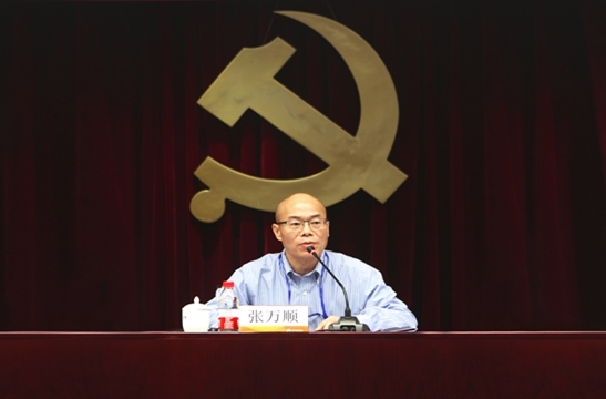 6月20日,開班儀式在莊嚴的國歌聲中拉開序幕,張萬順帶領全體參會人員重溫入黨誓詞,并從充分認識黨的十九大重大意義和核心內涵,把思想行動統一到黨的重大決策部署上來;深刻領會習近平新時代中國特色社會主義思想的實質內涵,更好地指引企業改革發展實踐;認真學習貫徹黨的十九大精神,立足做強做優做大企業,推動改革發展邁上新臺階;全面領會新時代黨建工作部署和要求,切實加強黨的建設,為改革發展提供堅強保障等四個方面,為參訓學員講授主題黨課。