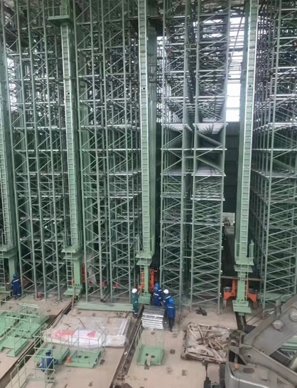 印尼亞太立體庫項目總貨位數(shù)為3792個,按貨位規(guī)格可存放紙卷2876噸,最大可存儲紙卷規(guī)格為直徑φ1200×幅寬1800mm,最大可儲存紙卷重量1500kg。6臺堆垛機負(fù)責(zé)紙卷的出入庫轉(zhuǎn)運,入庫能力110卷/小時,出庫能力110卷/小時,空載運行速度120m/min,負(fù)載運行速度100m/min。