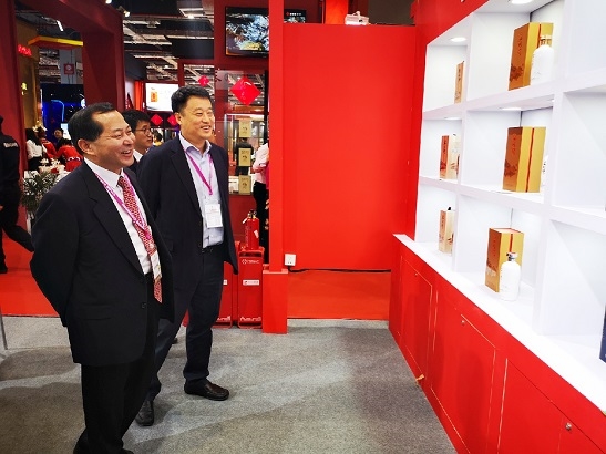 郭建全一行參觀展會,與食品院有技術合作的五糧液、酒鬼酒、國臺酒、釣魚臺酒、秦含章酒、梁大師等企業負責人深入溝通服務合作。