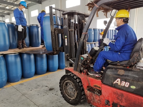 1月26日,中輕日化下屬中輕化工接到一家消毒產品企業客戶的緊急購貨電話。正值大年初二,中輕日化在浙江紹興的生產基地還處于管控狀態。為了更多消毒產品原料能快速到達制造企業,中輕紹化立刻協調園區管委會開啟綠色通道,在第二天就把物資送達到客戶手中。