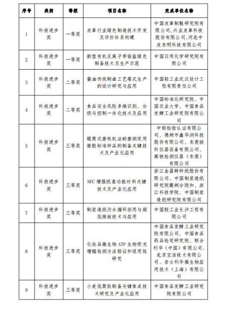 保利中輕獲得2022年中國(guó)輕工業(yè)聯(lián)合會(huì)科技獎(jiǎng)明細(xì)