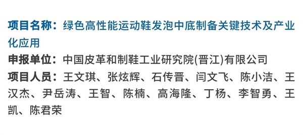 中國(guó)皮革制鞋院晉江公司申報(bào)的“綠色高性能運(yùn)動(dòng)鞋發(fā)泡中底制備關(guān)鍵技術(shù)及產(chǎn)業(yè)化應(yīng)用”項(xiàng)目,以典型鞋用EVA和TPU彈性體為基體,開展了綠色高性能運(yùn)動(dòng)鞋發(fā)泡中底制備關(guān)鍵技術(shù)及產(chǎn)業(yè)化應(yīng)用相關(guān)工作,揭示了相關(guān)材料改性調(diào)控機(jī)制、內(nèi)在發(fā)泡行為及作用機(jī)理。項(xiàng)目成果填補(bǔ)了制鞋行業(yè)在發(fā)泡EVA中底和生物質(zhì)改性TPU中底領(lǐng)域空白。
